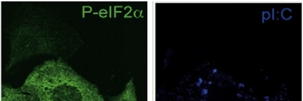K1抗體用于檢測(cè)MEFs處理過(guò)的poly I:C(圖.右),可以檢測(cè)到dsRNA與及磷酸化的eIF2a.( 圖.左)J2單克隆抗體
