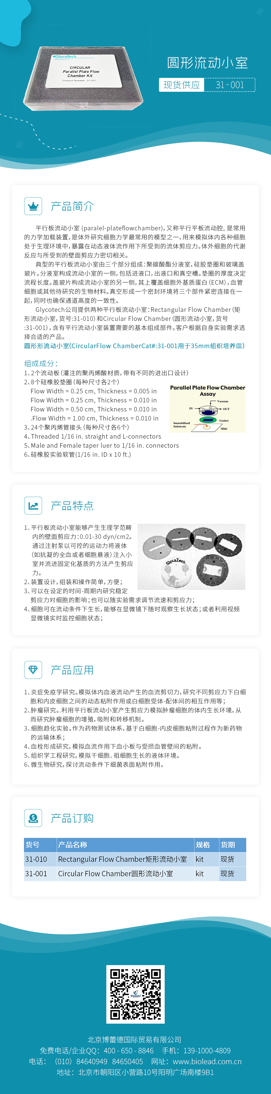 Glycotech公司提供兩種平行板流動(dòng)小室:Rectangular Flow Chamber(矩形流動(dòng)小室,貨號(hào):31-010)和Circular Flow Chamber(圓形流動(dòng)小室,貨號(hào):31-001),含有平行流動(dòng)小室裝置需要的基本組成部件??蛻舾鶕?jù)自身實(shí)驗(yàn)需求選擇合適的產(chǎn)品。