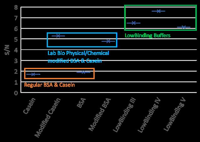 • Lab Bioreagents modified BSA and casein provide improved S/N at ~5