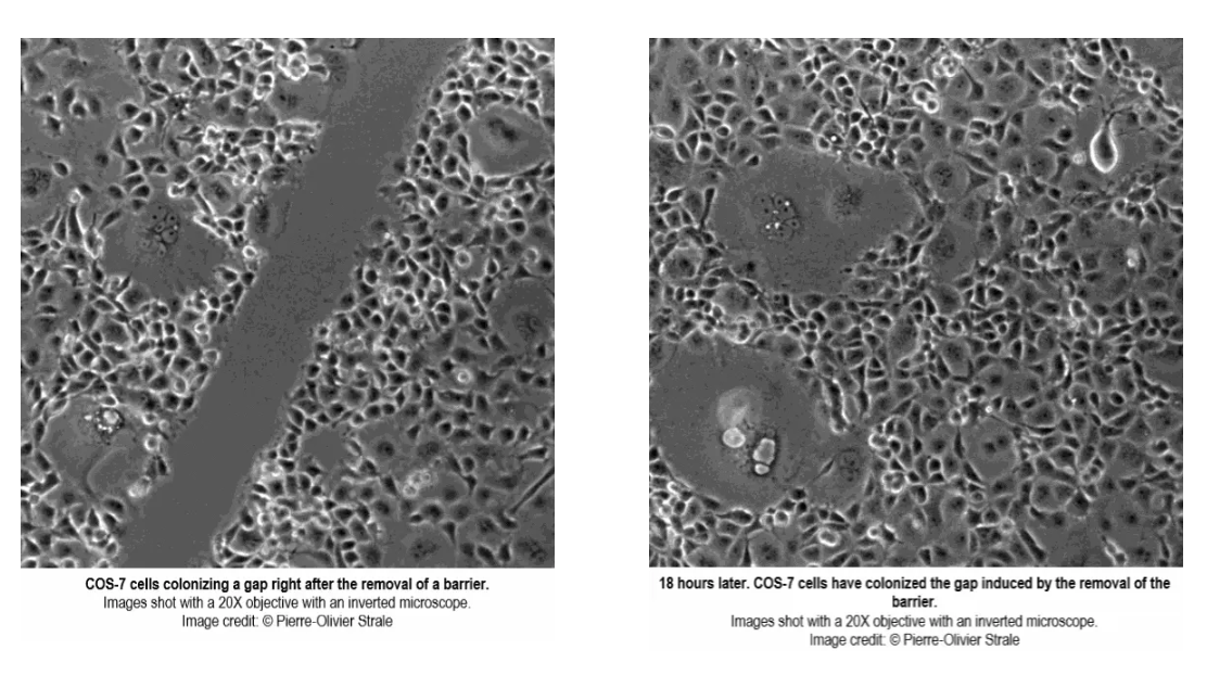 Stencell are ready-to-use silicon chambers that you can stick and remove for cellular confinement or dynamic assays, such as migration or wound-healing.