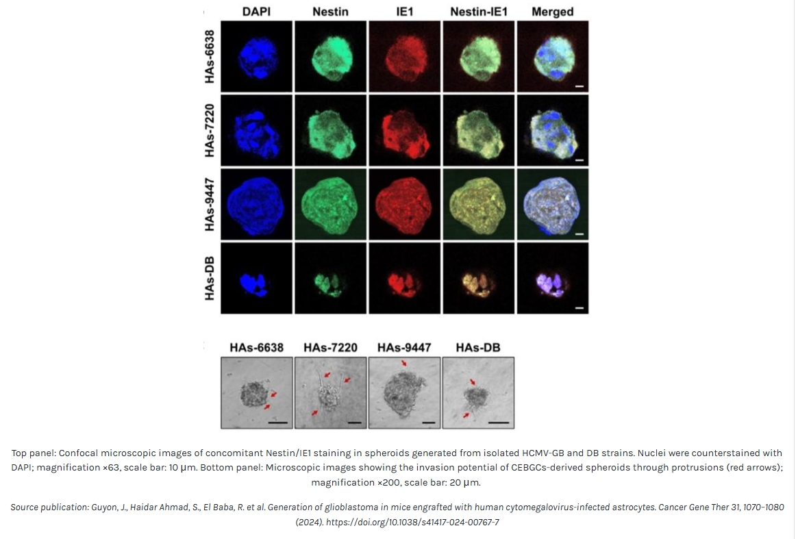 Spheroid forming and invasion potentials of CMV-elicited glioblastoma cells